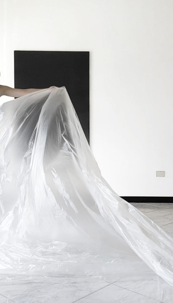 The studio was the place where Mnemosyne’s paintings could emerge organically, for the imagination is the place where dreams, memories and images chase each other, overlap, create and dissolve. For this reason, the place itself is the subject of the work, or rather, the main character becomes the act of walking as the title suggests.