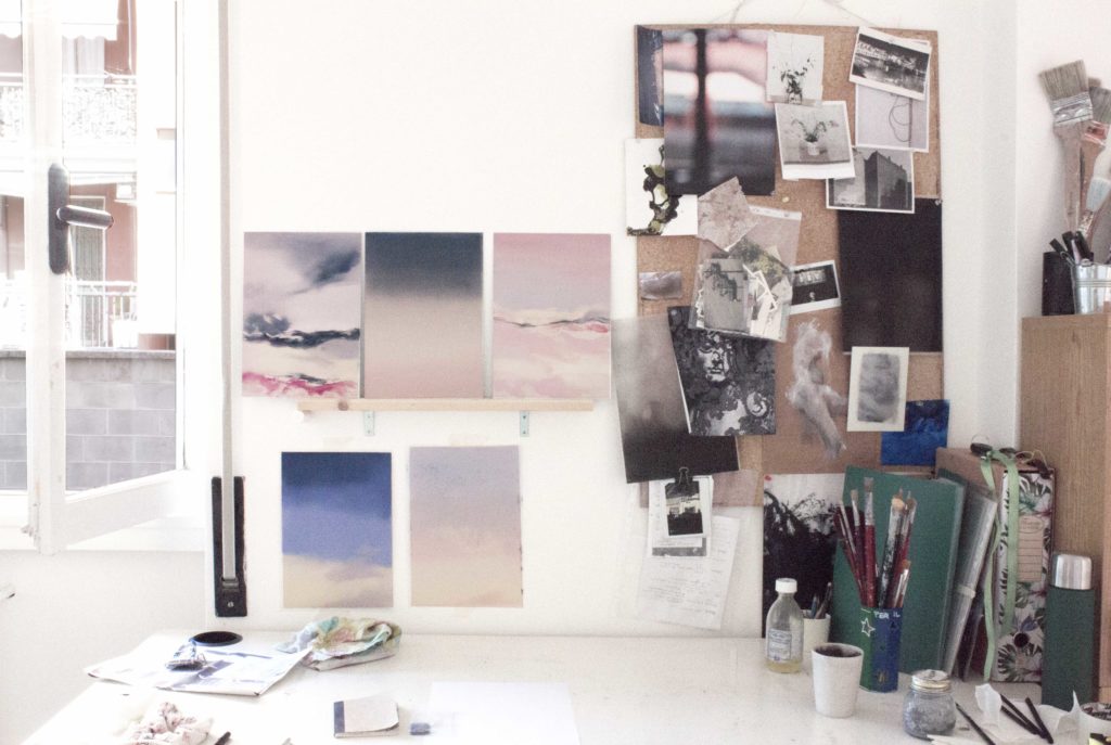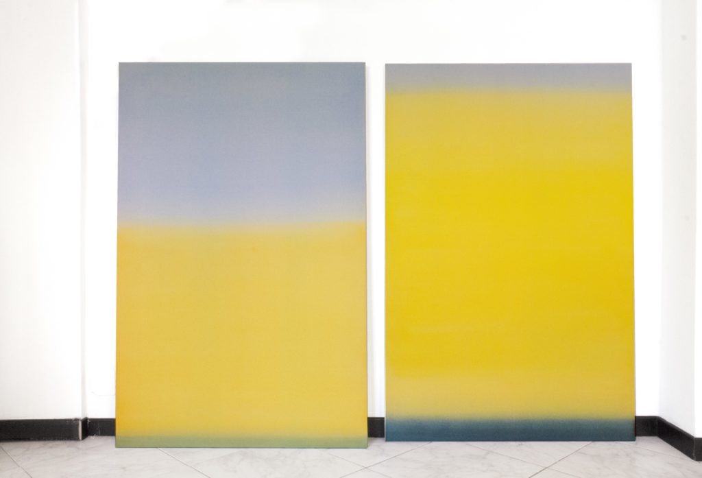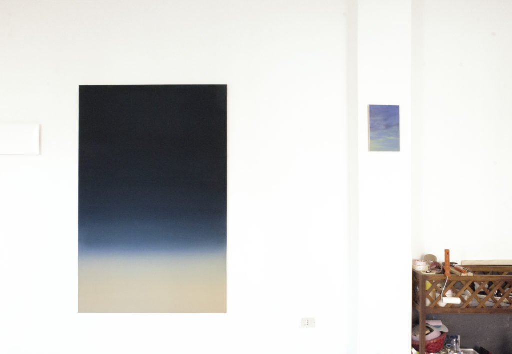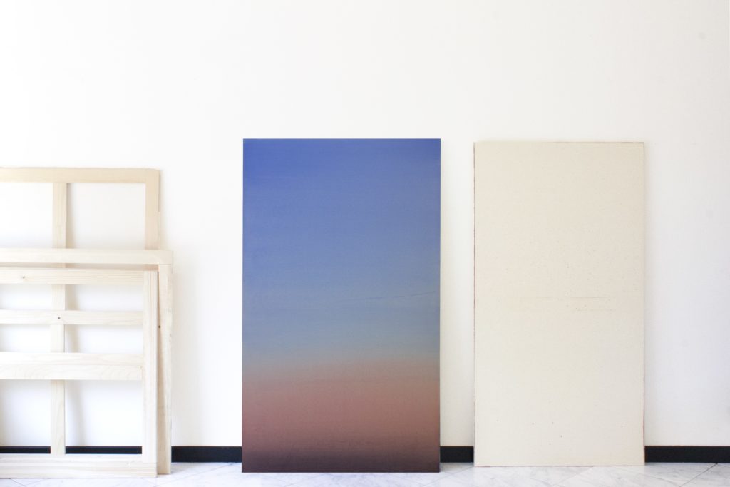 The Sky Place serie draws near the problem of the flesh, placing itself in the dim light. Small portions of the sky are pervaded with light that triumphs in the painting. The spatiality of the clouds and the sky emerges from simple brushes of colour.